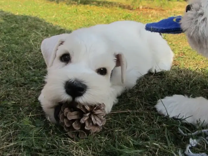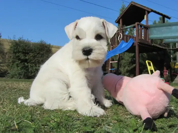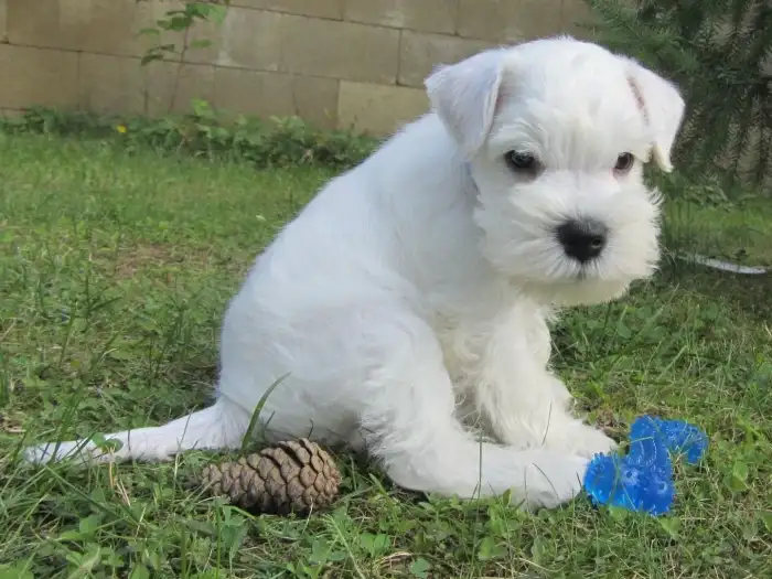 Prodám Knírače malého - CHS Švarcava zadá štěňátka s PP v atraktivní bílé barvě. Malý bílý knírač je společenský pes malého vzrůstu (35 cm v kohoutku, váha 7-8 kg), vhodný jak k dětem, tak do bytu. J...