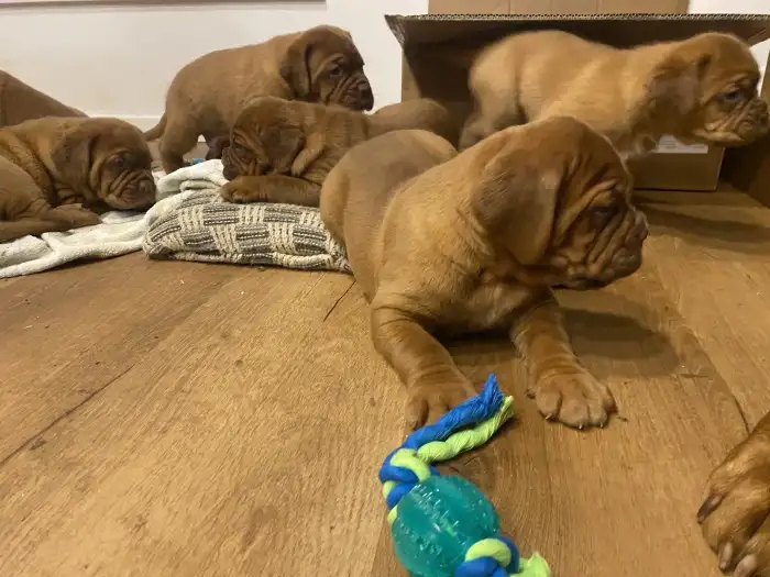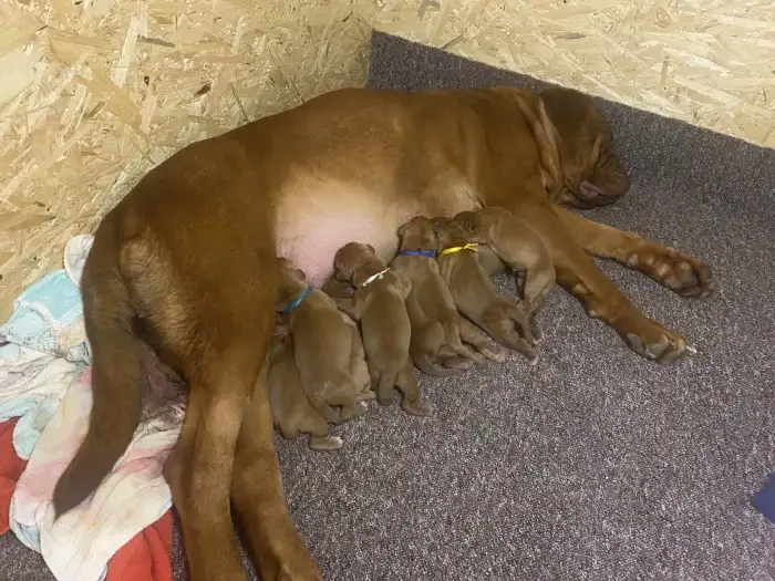 Prodám Bordeauxské dogy - Na prodej jsou špičková štěňata bordeauxské dogy. Ve vrhu je 4 psi a 4 feny, všechny s kompletní zdravotní dokumentací. Štěňata pocházejí od vynikajících, oceněných rod...