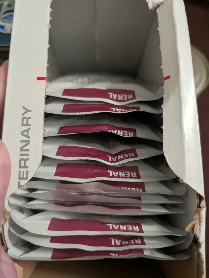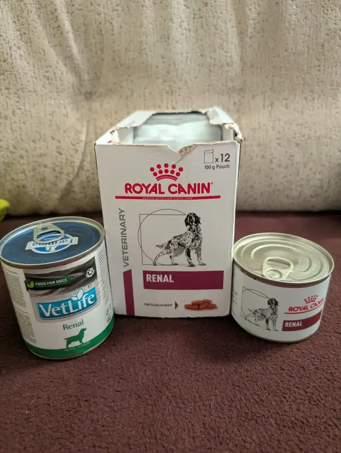 Nabízím veterinární granule, kapsičky a konzervy na ledviny (renal) a taky léky na ledviny a játra, které už nevyužijeme.