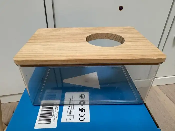 Prodám dřevěnou bednovou klec s příslušenstvím a vnitřním osvětlením. Stav jako nová. Rozměry 50x76x45 (VxŠxH). Cena 1 500,-