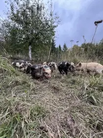 Nabízím domácí jatečné prase na porážku v biokvalitě, váhy 150-180kg, klasické bílé masné plemeno, 50kč/kg živ. hmotnosti, vážení na místě digitální váhou, dovoz možný.