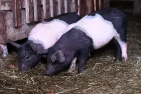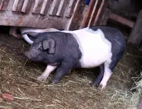 Prodám Přeštické černostrakaté prase - Prodám poslední selata Přeštického prasete. Plně přivyklá na běžná statková krmiva (brambory, ječný, hrachový, pšeničný šrot apod., tzn. krmená bez průmyslových...
