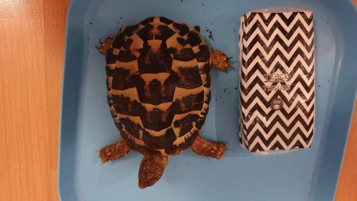 Ahoj, máme menší poddruh želvy Testudo Hermanni Hermanni - zřejmě samec.