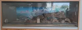 Prodám velké paludárium, 210 (délka) x 65 (šířka) x 75 (výška). Nemůže být použito jako plnohodnotné akvárium, je dělané na zakázku přímo jako paludárium - je možné ho naplnit do cca poloviny (výška h...