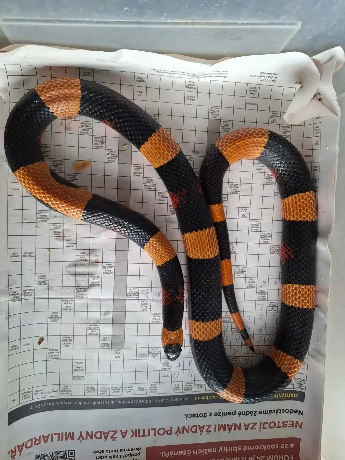 Prodám Korálovku sedlatou - Prodám mláďata korálovky lampropeltis triangulum nelsoni albino , NZ 8/25, rozkrmené, vlastní odchov, pohlaví určím. Po dohodě dovezu do Brna.