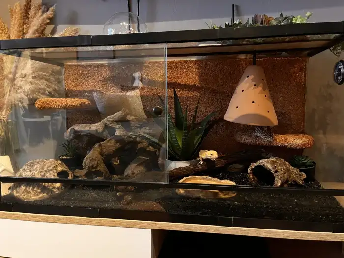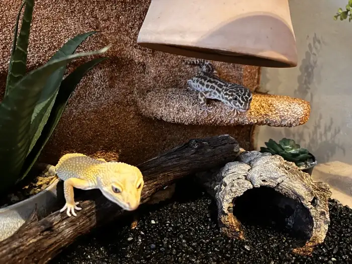 Prodám Gekončíka nočního - Prodám 2 gekončíky noční včetně vybaveného terária, krabičky na cvrčky a minerálů. Gekončíci jsou půl roku staří. Terárium 60x30x30 cm. Pouze osobní předání v Olomouci.