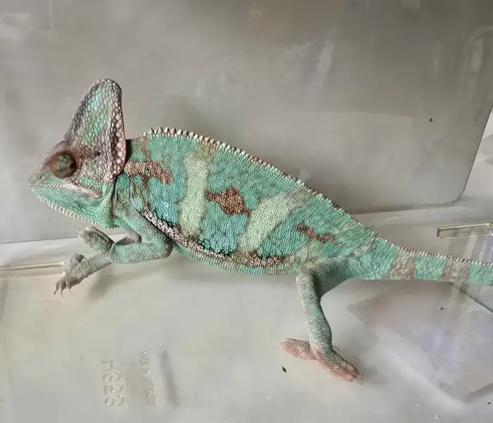 Prodám Chameleona jemenského - Prodám Chameleon Jemenský chovný pár podle barvy samice plná vajíček z důvodu stěhování toto je nabídka omezená pouze do 10.10.25.Samec stáří rok a půl samice roční. Při...
