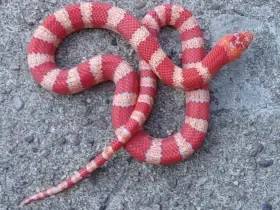 Prodám Korálovku mexickou - Prodám mláďata 4ks Korálovky sedlaté mex cambeli. Narozena září, samostatně přijímají potravu(rozmr. holata). Vel. cca 25cm, v dospělosti cca 120cm. Zajímavě zbarvený druh...