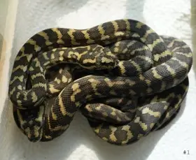 Prodám Krajtu kobercovou - prodám krajtu kobercovou i s terárkem v rozměru 70X40X40 terárko je v dobrém stavu rok staré k terárku dodám misku na vodu dřevo a světlo terárko má pozadí