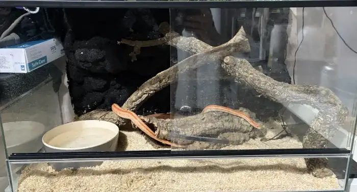 Prodám Užovku červenou - nabízím 3 mláďata užovky červené stáří 3 měsíce, rozkrmené a zvyklé brát na ruku pohlavi neurčeno cena 500Kč za kus, pouze osobní předání