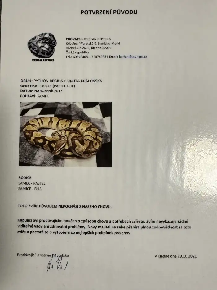 Prodám Krajtu královskou - Nabízím zdravé a klidné krajty královské (Python regius).Zvířata jsou zvyklá na manipulaci, chovaná v čistém a pečlivě udržovaném prostředí. Každý jedinec je pravidelně krme...