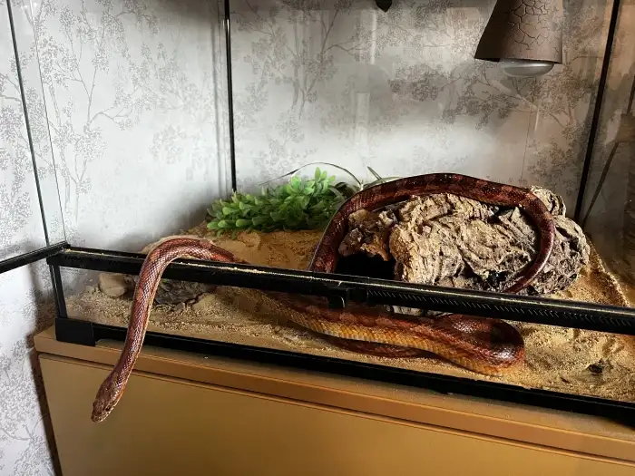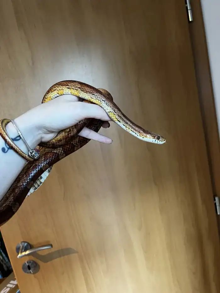 Prodám Užovku červenou - č.112. Bloodred het Cinder 66% het Charcoal 1200Kč Mláďata narozená v roce 2025 : (samice) BK2. Brook Korn Anery ph Hypo Amel 3000Kč (samice) BK4. Brook Korn Anery ph Hyp...