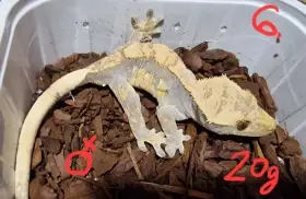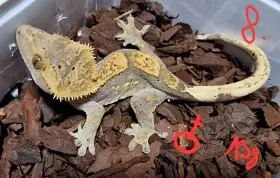 Prodám Pagekona řasnatého - Prodám dospělého samce 43g Extreme Harlequin. Aktivní a zdravý, baští cvrčky i kaše. Cena 2300 Kč, při rychlém jednání ještě možná dohoda.