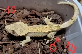 Prodám Pagekona řasnatého - Prodám mláďata, zvyklá na kontakt, kaše i cvrčky. Aktivní a zdravá. F3.♂️ 22g Phanton Lw- 1500 Kč F5.♀️17g Part.stripe - 800 Kč F7.♂️16g Dalmatin- 1500 Kč F8.♀️ 13g LW...