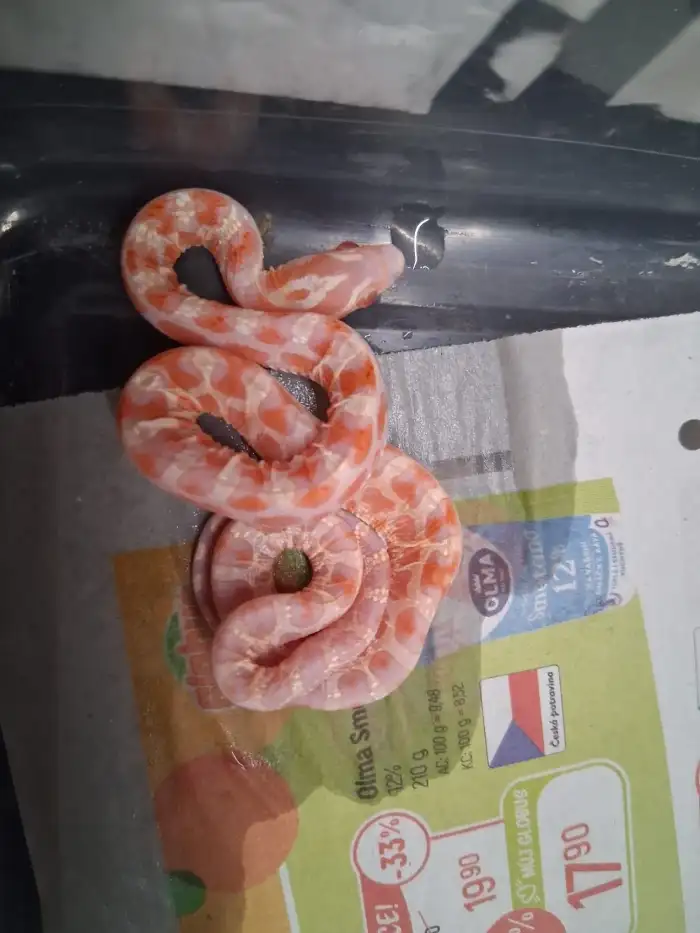 Prodám Užovku červenou - č.112. Bloodred het Cinder 66% het Charcoal 1200Kč Mláďata narozená v roce 2025 : (samice) BK2. Brook Korn Anery ph Hypo Amel 3000Kč (samice) BK4. Brook Korn Anery ph Hyp...