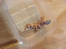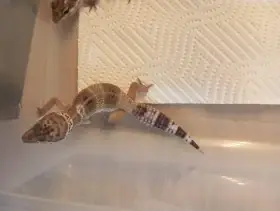 Prodám Gekončíka nočního - Prodám dospělého Gekončíka nočního Narození: 2021 Genetika: blazing blizzard het diablo blanco Zvyklá na šváby dubia a moučné červy