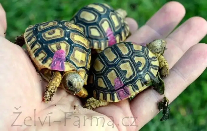 Prodám Želvu pardálí - Z vlastního malého chovu prodám vitální, mláďátka želv pardálích nar. v 9/2025. Želvičky přibývají na váze a jsou aktivní. Jedná se o větší druh suchozemských afrických želv (mo...