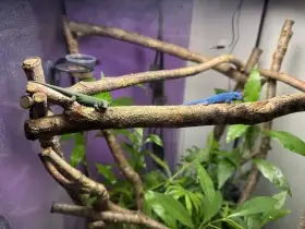 Prodám Felsumu madagaskarskou - Prodám samici phelsumy grandis, starou cca půl roku. Vitální, aktivní, zdravá. Kašičky jí moc nejedou, nicméně mám je taktéž. Miluje hmyzáky, cvrčky, mušky, malá sara...