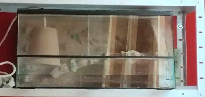 Větrání vpředu a ve stropě, po stranách lišty proti otevření dvířek zvířetem. Cena za terárko 1000,- Pouze osobní odběr.