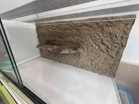 Prodám Chameleona jemenského - Samice, mládě i s teráriem a vybavením v něm ! Terárium: 50 délka, 80 výška, 40 hloubka + nové vitamíny, vápník, dva fauna boxy pro ní a pro cvrčky, velká kovová p...
