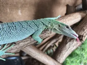 Prodám Varana smaragdového - Prodám dospělou samici,v.prasinus, zvíře v perfektní kondici, zdravé a krásně přijímá potravu.vhodna ihned do chovu.