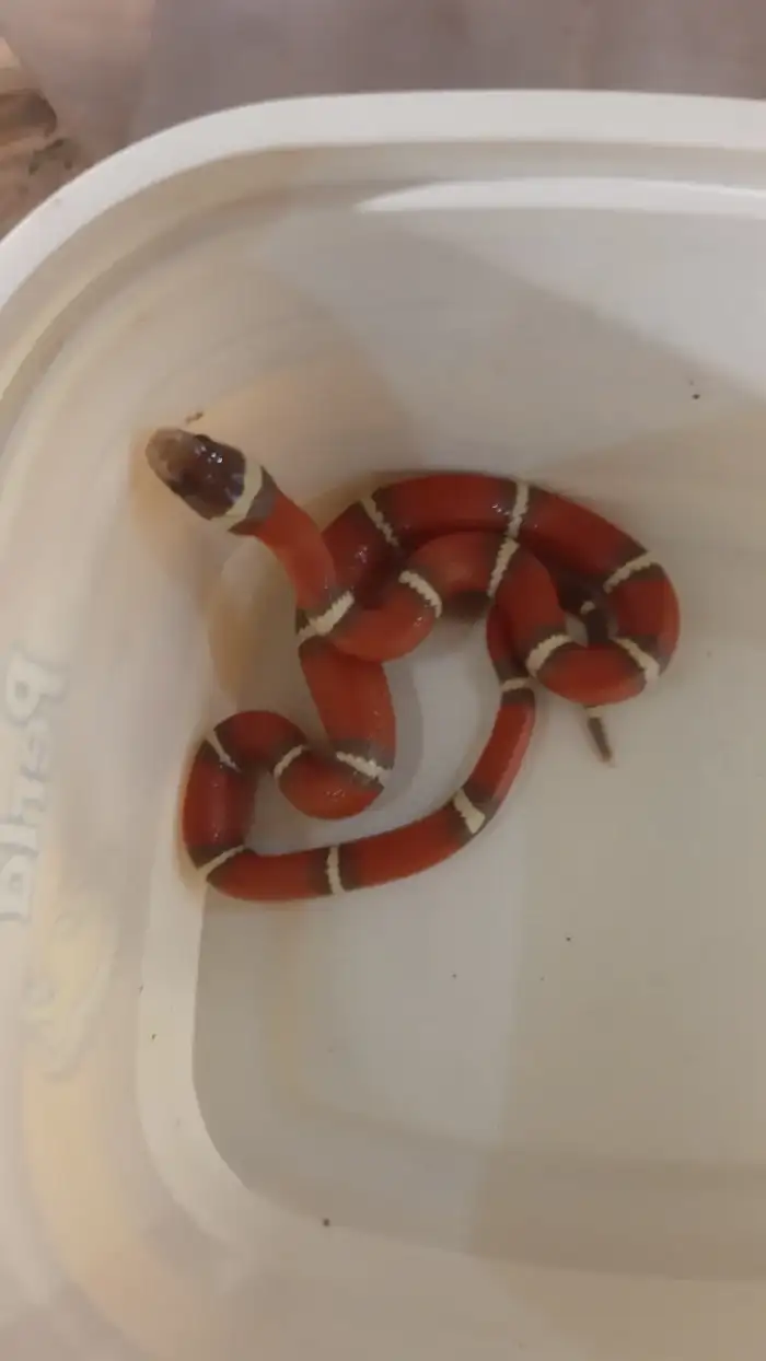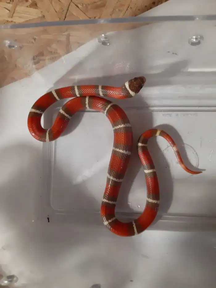 Prodám Korálovku sedlatou - Prodám Korálovku Sedlatou, pohlaví neurčeno. Prcek s milou povahou. Prodám společně s teráriem (60x45x45). Cena: 2000,-, osobní odběr v Praze.