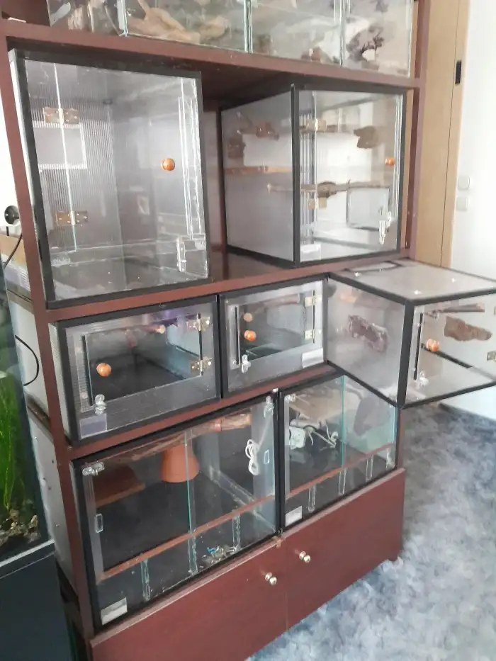 Prodám interiérovou bednovou klec. Materiál 22mm LPD buk. Rozměr: v. 1295mm, š.945mm, hl.595mm. Rozdělená na 1/2 klec a uschovný prostor. Výsuvný šuplík, vyklopné horní dveře plus spodní dva ks, víz.f...