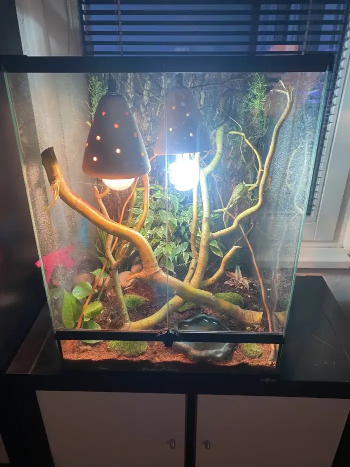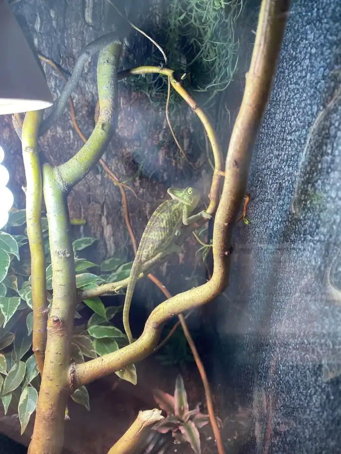 Prodám Chameleona jemenského - Vlastní odchov Chameleonů jemenských (Chamaeleo calyptratus) . Velikost mláďat 20-22cm( 10-11cm v tele bez ocasku).Stáří chameleonů je cca 3 měsíce. Mohu přidat vápník z...