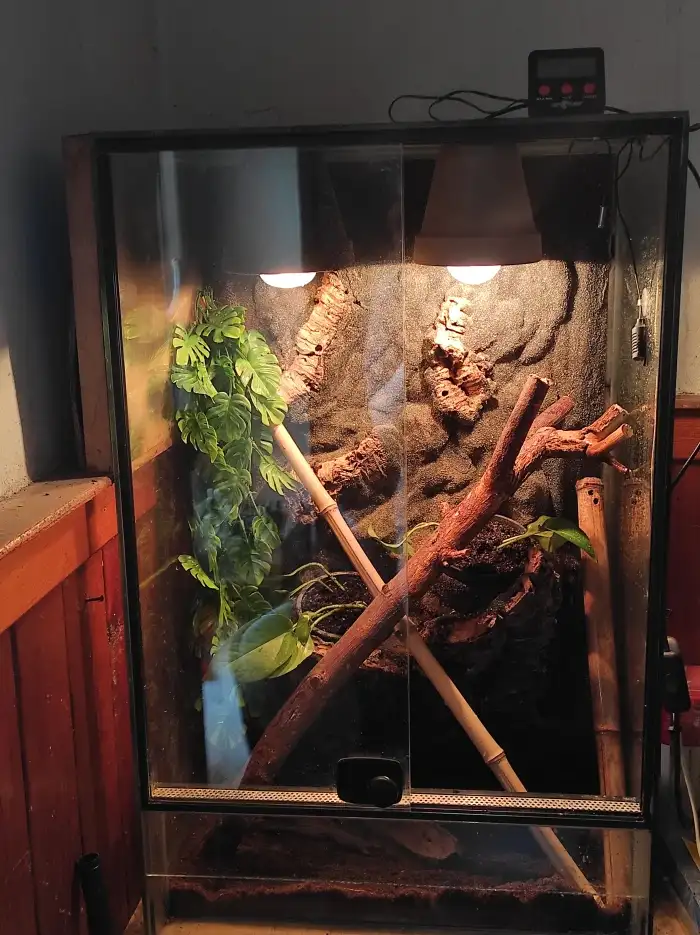 Prodám terárium. Pořizovací cena 1500. Nechám za 800kč. Rozměry 80x50x77. Nainstalovaný kabel na objímku se žárovkou.