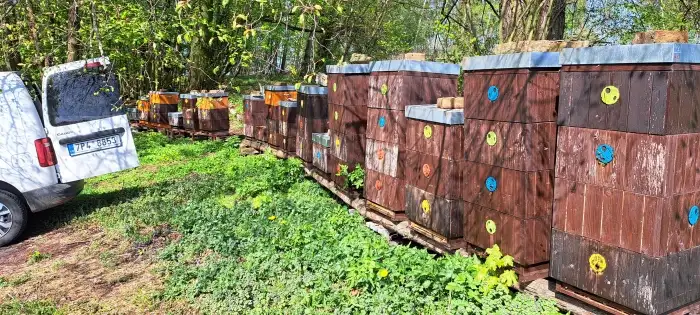 Pětirámkové oddělky. Tři rámky plodu+dva rámky zásob. Dostatek včel pro rozvoj.Letošní F1 volně pářená matka Buckfast. Rámkové míry 39x24, 2/3 a 1/1langstroth. Odběr v červnu. Cena 2 500Kč. Obje...
