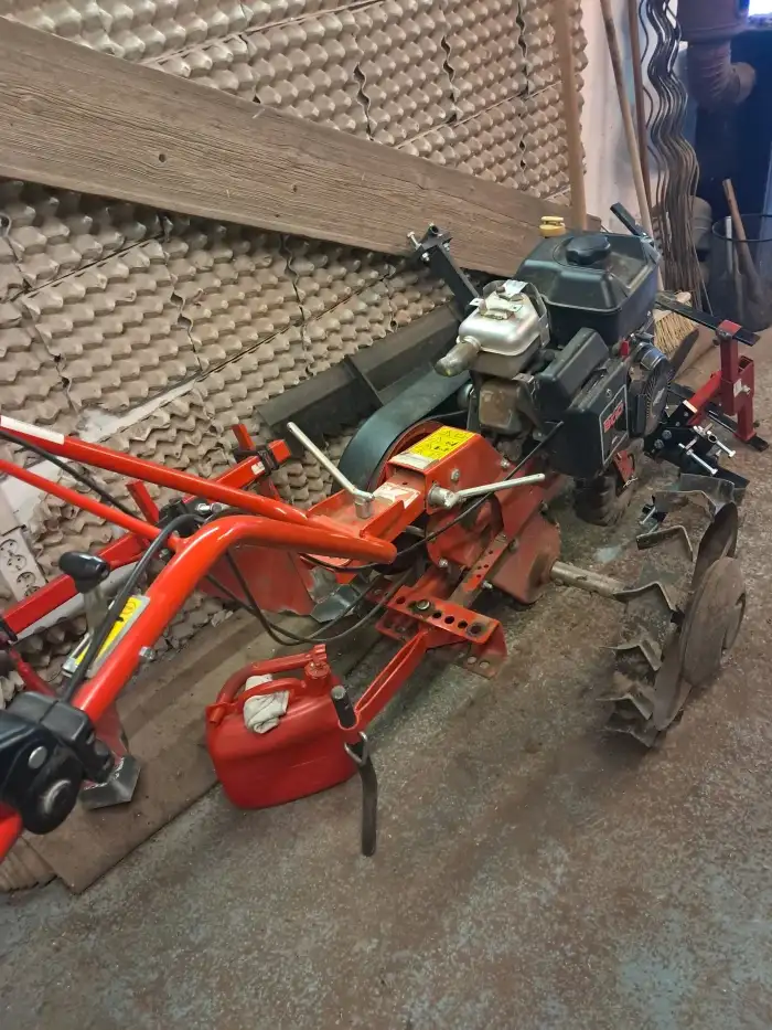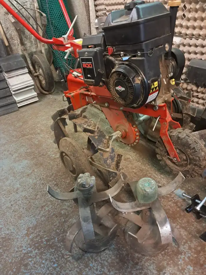 Kultivátor s ocelovýmy koly ○ 50 cm a závažím + 2 kusy rotavátoru + montážní stojánek v dobrém technickém stavu. Využívaný na všechny zahradní práce tak 5x za rok na menší zahradě od koupi nového stro...